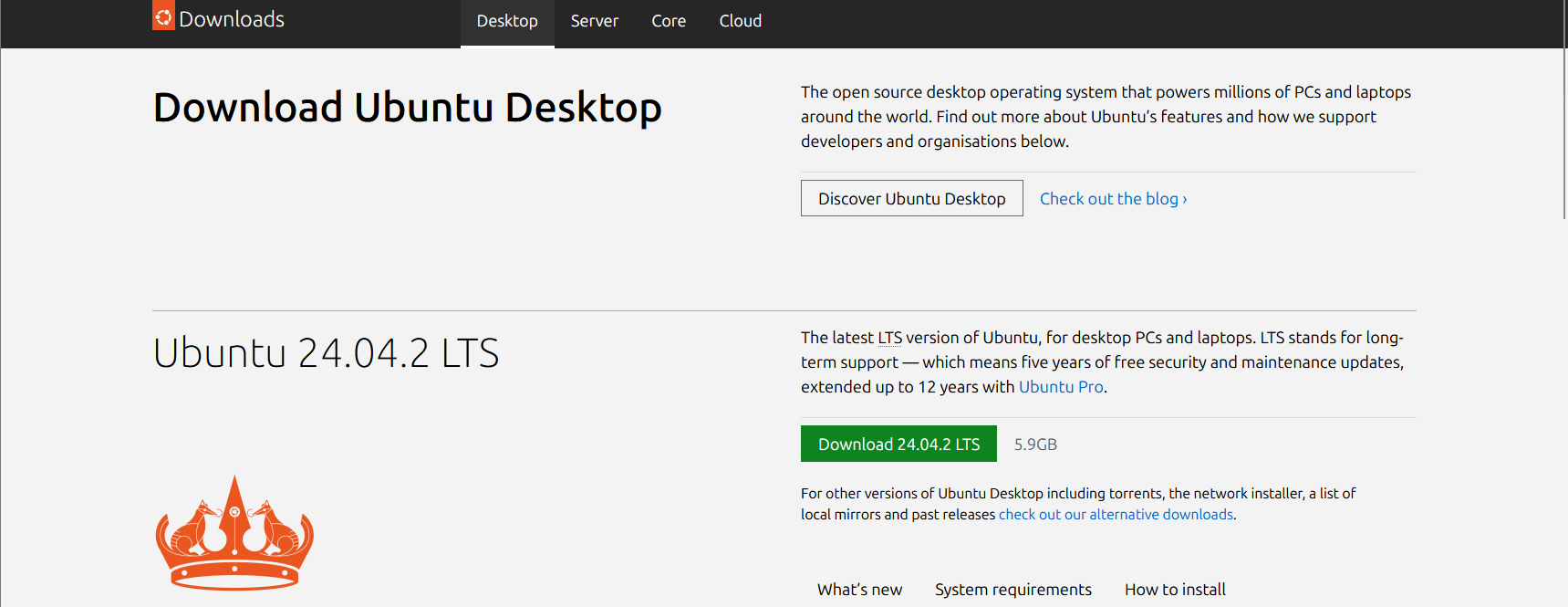 - Download Ubuntu van de officiële website (ik gebruik de LTS-versie).