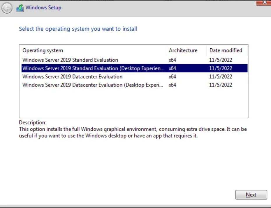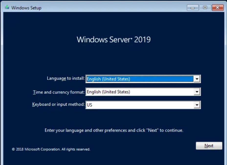 Kies bij (iso) optie voor de ISO van de Windows Server 2019.