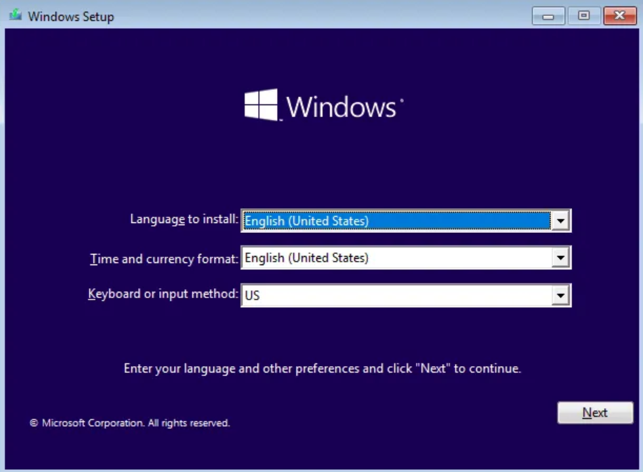 Na de installatie van Windows krijg je de standaard configuraties als: Taal, keyboard layout etc.
