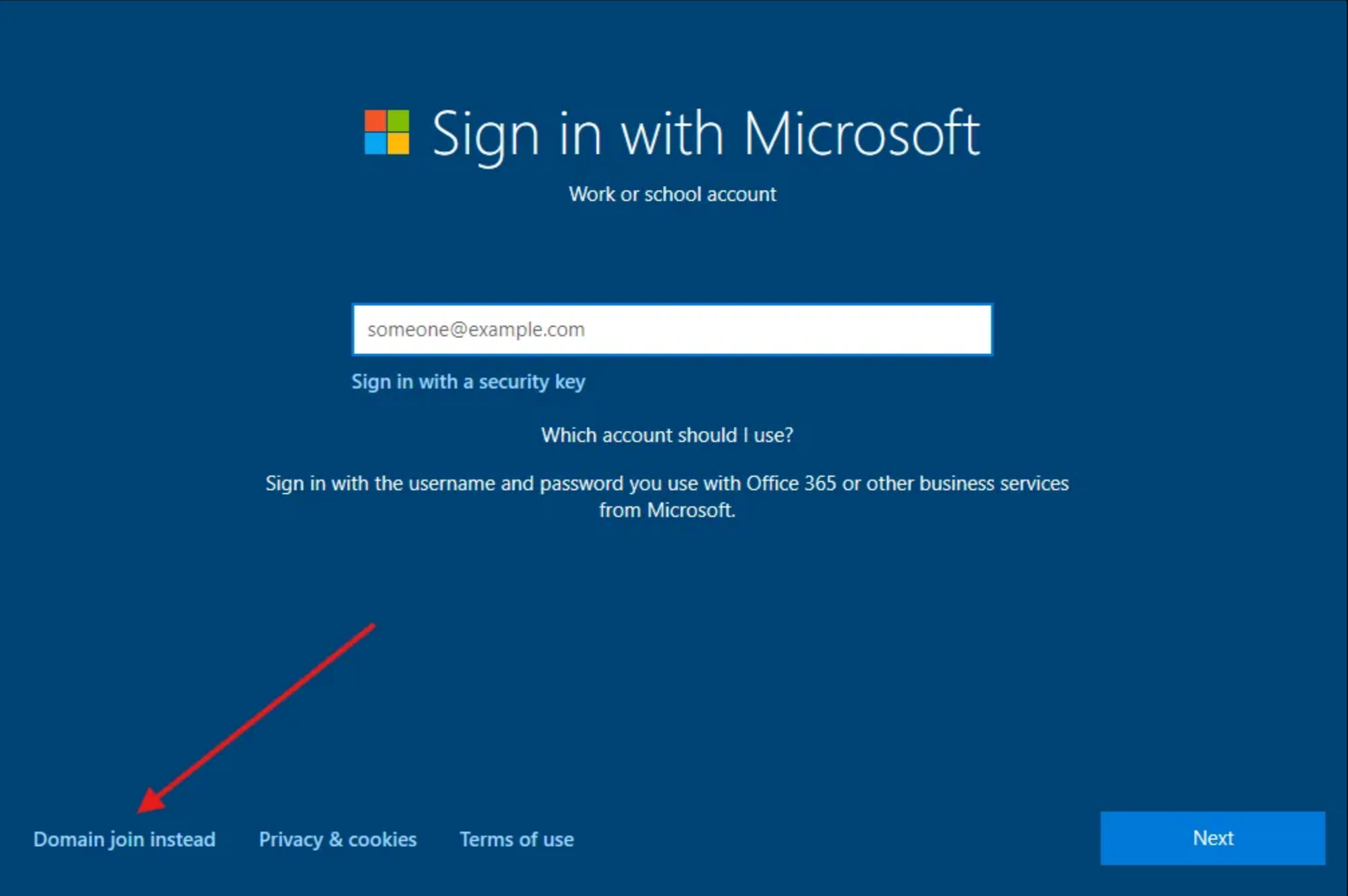 Bij dit scherm mag je kiezen voor Domain join instead.