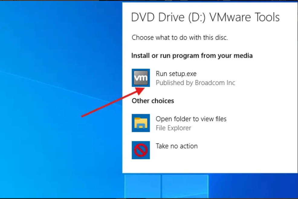Zoek in de balk van je VM naar de optie 'Install VMware Tools' en klik daar op.