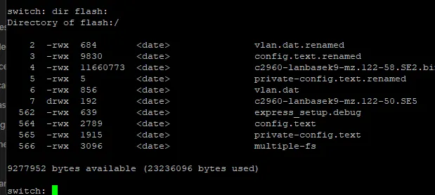 bootNa de boot startte de switch volledig terug in fabrieksinstellingen.