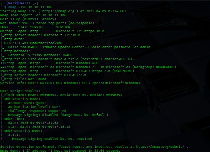 Daarnaast zijn de shares van de machine goed afgeschermd; poorten 135/tcp en 445/tcp staan dicht of geven geen bruikbare toegang.