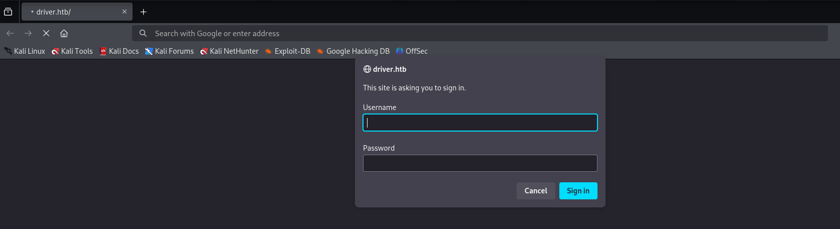 We controleren eerst of er een webpagina actief is op poort 80 en krijgen een inlogscherm te zien.