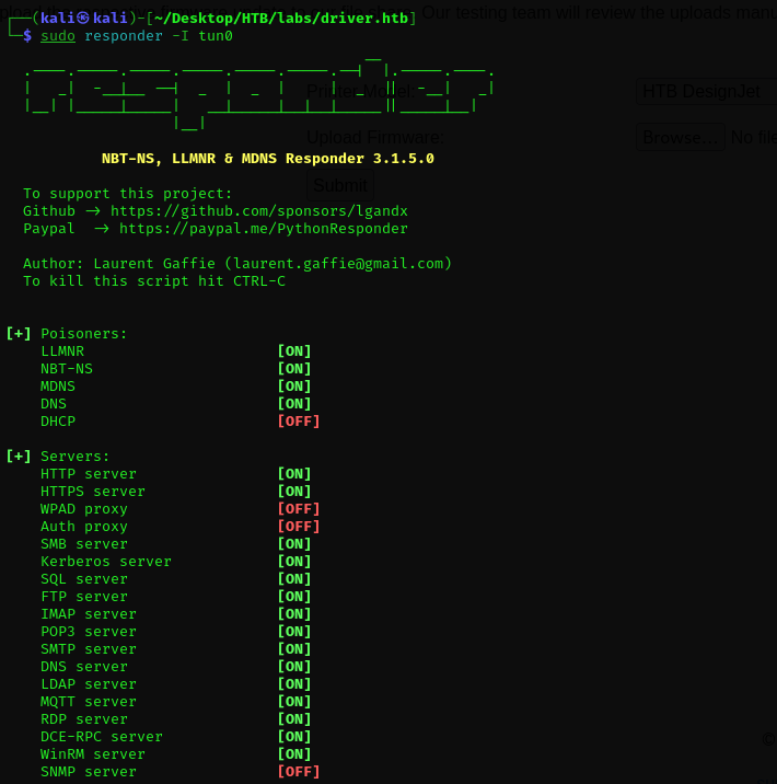 Met een SCF-aanval kunnen we mogelijk een SMB-connectie uitlokken. De bijbehorende authenticatiepoging kunnen we vervolgens onderscheppen met Responder.