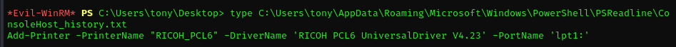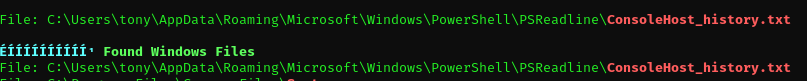 Na het uploaden en uitvoeren van WinPEAS.exe op de targetmachine stuiten we op een interessant bestand: ConsoleHost_History.txt.