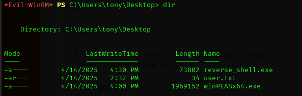 hashcat -m 5600 tony-hash.txt /usr/share/wordlists/rockyou.txt