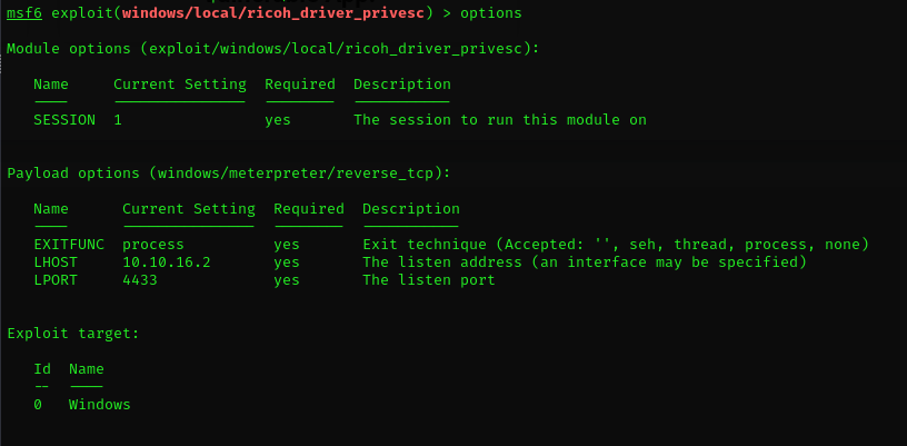 Daarna configureren we de module ricoh_driver_privesc zodat deze klaar is voor uitvoering.